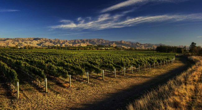 坎特伯雷產(chǎn)區(qū)位于新西蘭南島中段,沿東部海岸線綿延近200公里,葡萄園如巨幅畫卷般徐徐展開。整體上來說,坎特伯雷氣候晴朗、干燥且較為涼爽,遼闊的太平洋為其帶來涼爽的海風(fēng),西面的高大山脈則有效阻擋了塔斯曼海(Tasman Sea)帶有水汽的西風(fēng)。