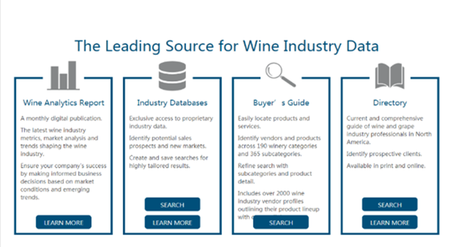 葡萄酒零售商和制造商將有更廣泛的渠道了解葡萄酒的種類,與尼爾森的季度報告的季度報告相結(jié)合,了解細(xì)分市場的規(guī)模和趨勢,按價格層次、原產(chǎn)地、品種和種類劃分的零售計量數(shù)據(jù)、目的地市場。用戶將有能力訪問類別和分部數(shù)據(jù)尼爾森和 DTC裝運數(shù)據(jù)部分或整體均可,聯(lián)合方案中的DTC裝運包括在酒廠的網(wǎng)上訂單,網(wǎng)站、酒廠葡萄酒俱樂部發(fā)貨給他們的成員,品酒室采購發(fā)貨到根據(jù)酒莊所在地區(qū)、年度酒莊產(chǎn)量和目的地追蹤銷售情況,貨物種類、品種和價格。