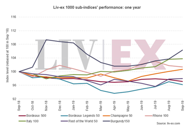 行業(yè)基準(zhǔn)的Liv-ex 100和優(yōu)質(zhì)葡萄酒50指數(shù)則在9月份同跌0.3%。