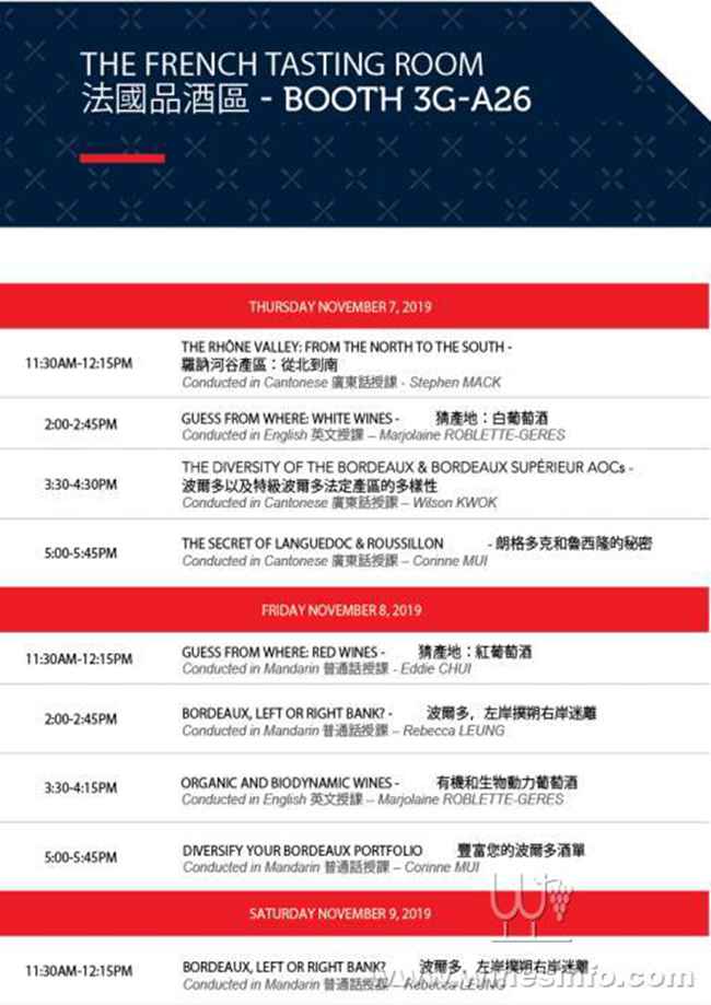 今年酒界盛事香港國際美酒展(11 月 7 至 9 日)將迎來 70 多家法國展商。佔地約 513 平方米的法國館位于香港會議展覽中心 3F-G,由法國商務投資署(Business France)及新阿基坦大區(qū)食品協(xié)會 (AANA)籌辦。在香港市場排名第一的法國葡萄酒和烈酒分別佔 60%及 40%市場份額。 French Tasting Room 品酒區(qū)繼去年成功推出后,今年將重現(xiàn)法國館。法國展商將在共 9 場主題品酒環(huán)節(jié)上陳列各款佳釀,這對于進口商、專業(yè)人士及業(yè)馀愛好者來說是一個難能可貴的大滿足機會,品嚐出產自法國的純釀。