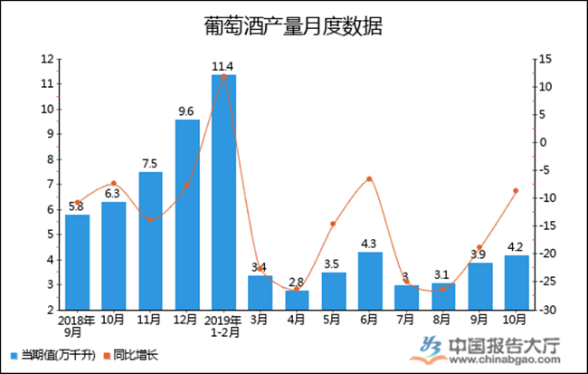 以上就是2019年1-10月全國葡萄酒產(chǎn)量統(tǒng)計(jì),數(shù)據(jù)來源于國家統(tǒng)計(jì)局及中國報(bào)告大廳數(shù)據(jù)中心整理發(fā)布,僅供參考。