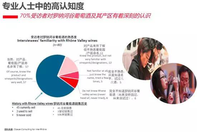 一個(gè)產(chǎn)區(qū)在一個(gè)市場(chǎng)發(fā)展的好,除了來自該產(chǎn)區(qū)的葡萄酒本身的品質(zhì)、性價(jià)比這些自身?xiàng)l件外,市場(chǎng)對(duì)來自該產(chǎn)區(qū)的產(chǎn)品的認(rèn)知同樣非常重要。特別是行業(yè)內(nèi)的專業(yè)人士,自身對(duì)產(chǎn)區(qū)了解足夠深入,在向消費(fèi)者推薦的時(shí)候才更游刃有余,才能將產(chǎn)區(qū)的優(yōu)勢(shì)更好的傳達(dá)給消費(fèi)者,從而帶動(dòng)整個(gè)產(chǎn)區(qū)在中國(guó)市場(chǎng)的發(fā)展。這一點(diǎn)在羅納河谷葡萄酒也有一個(gè)非常好的體現(xiàn),據(jù)羅納河谷葡萄酒產(chǎn)區(qū)協(xié)會(huì)的一項(xiàng)調(diào)研數(shù)據(jù)顯示,超過70%的專業(yè)受訪者對(duì)羅納河谷有著深刻的認(rèn)識(shí),這無疑就對(duì)羅納河谷葡萄酒在中國(guó)的發(fā)展帶來了極大的推動(dòng)作用。而從消費(fèi)者端的調(diào)研數(shù)據(jù)來看,羅納河谷葡萄酒已經(jīng)擁有了超過30%的認(rèn)知度。